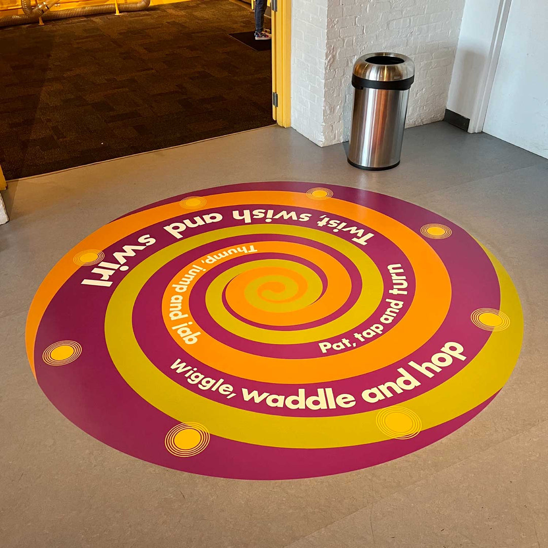 Add colorful visual interest to bland floors with durable, slip-resistant floor graphics. Applicable to concrete, brick, carpet and wood, floor graphics are an imaginative way to message and display your brand.