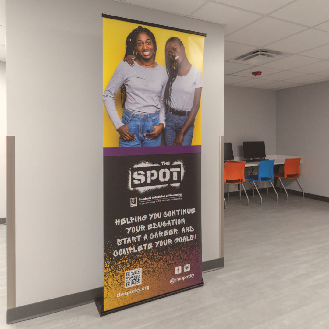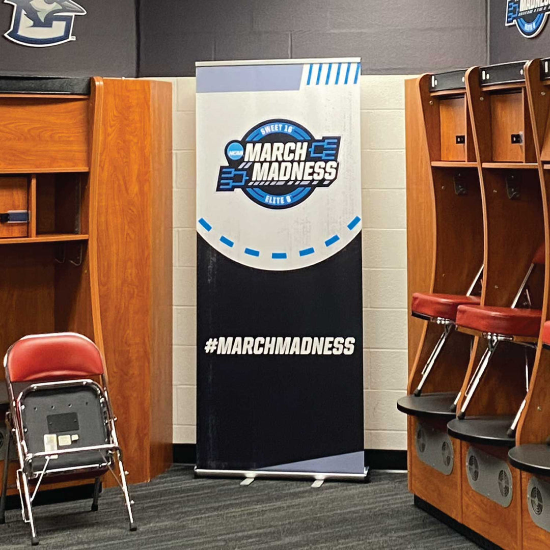High-quality, affordable retractable banner stand that will last multiple events. The custom graphics quickly roll up and store in the base, which features molded end caps for durability.